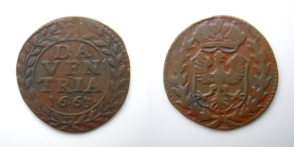 Bestand:Duit, koper, Stad Deventer 1663.jpg