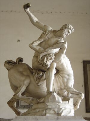Centauren worden meestal als brute, beestachtige wezens afgeschilderd en afgebeeld met een boog of een knuppel als wapen. Vooral dit laatste benadrukt nog het wilde element in zijn karakter. Dit wilde komt wellicht voort uit het verhaal van de roof door de centauren van Hippodamia, die met Pirithoüs zou trouwen, en de andere vrouwen van de Lapithen. Pirithoüs was de koning van de Lapithen. De centauren en de Lapithen raken daardoor slaags en het is Theseus die het pleit in het voordeel van de Lapithen beslecht. De centaur Nessus kon zijn handen niet van Deianeira afhouden, de vrouw van Herakles, en werd daarom door Herakles om het leven gebracht.
