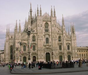 De voorgevel van de dom van Milaan